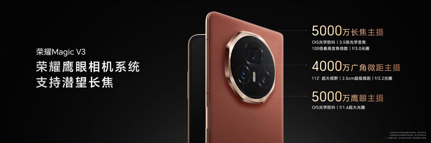 Honor утверждает, что Magic V3 получил «первый в отрасли» корпус из специального аэрокосмического сверхпрочного углеволокна. Аппарат получил «самые тонкие петли на сегодняшний день», толщина петель — всего 2,84 мм, ресурс — 500 000 циклов складывания и раскладывания.