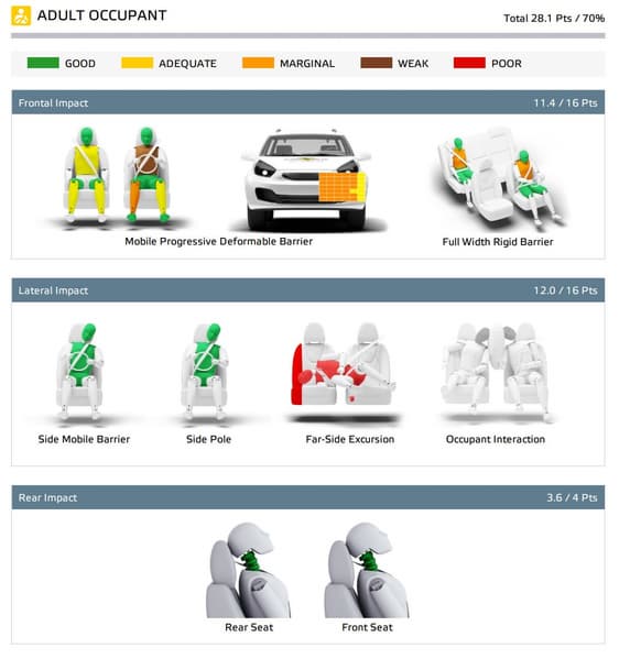 Результат бокового удара оценили в 12 баллов из 16, результат имитации удара сзади — 3,6 баллов из 4.