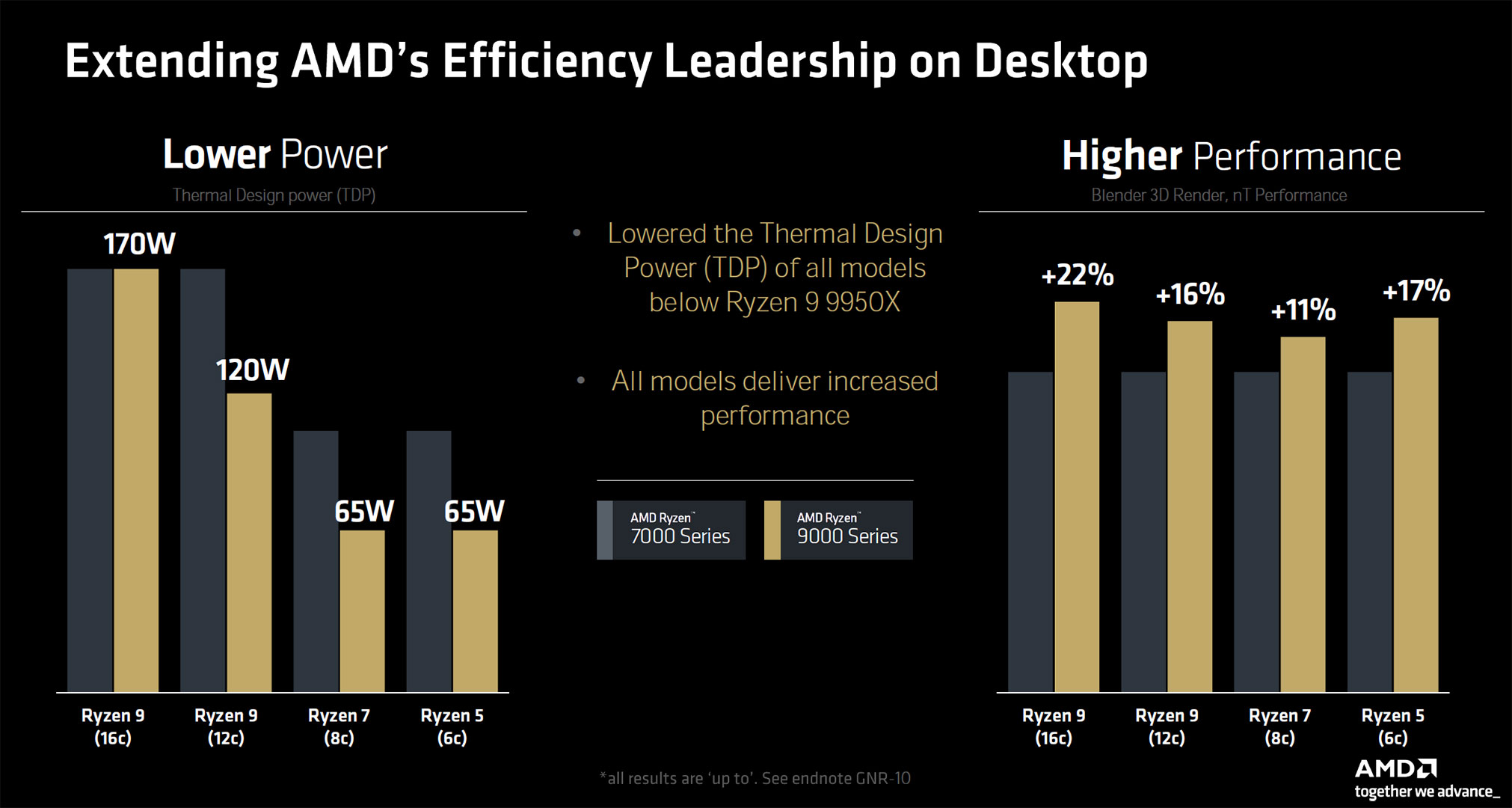 Заодно AMD поделилась некоторыми результатами производительности, как это сделала с мобильными Ryzen AI 300.