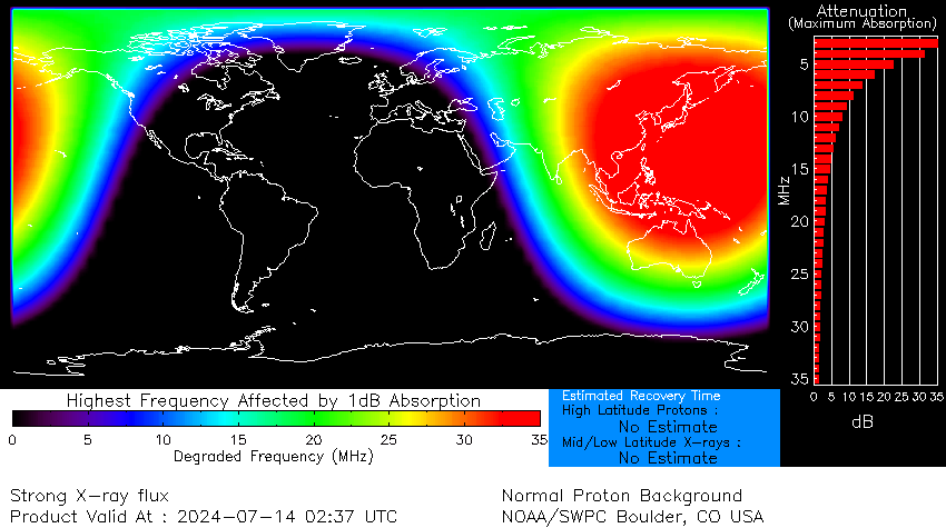 Излучение от солнечных вспышек ионизирует верхние слои атмосферы. Эта ионизация создаёт более плотную среду для распространения радиосигналов, что затрудняет связь на большие расстояния. Поскольку радиоволны взаимодействуют с электронами в ионизированных слоях, они теряют энергию из-за столкновений, которые могут ухудшить или полностью поглотить сигналы.