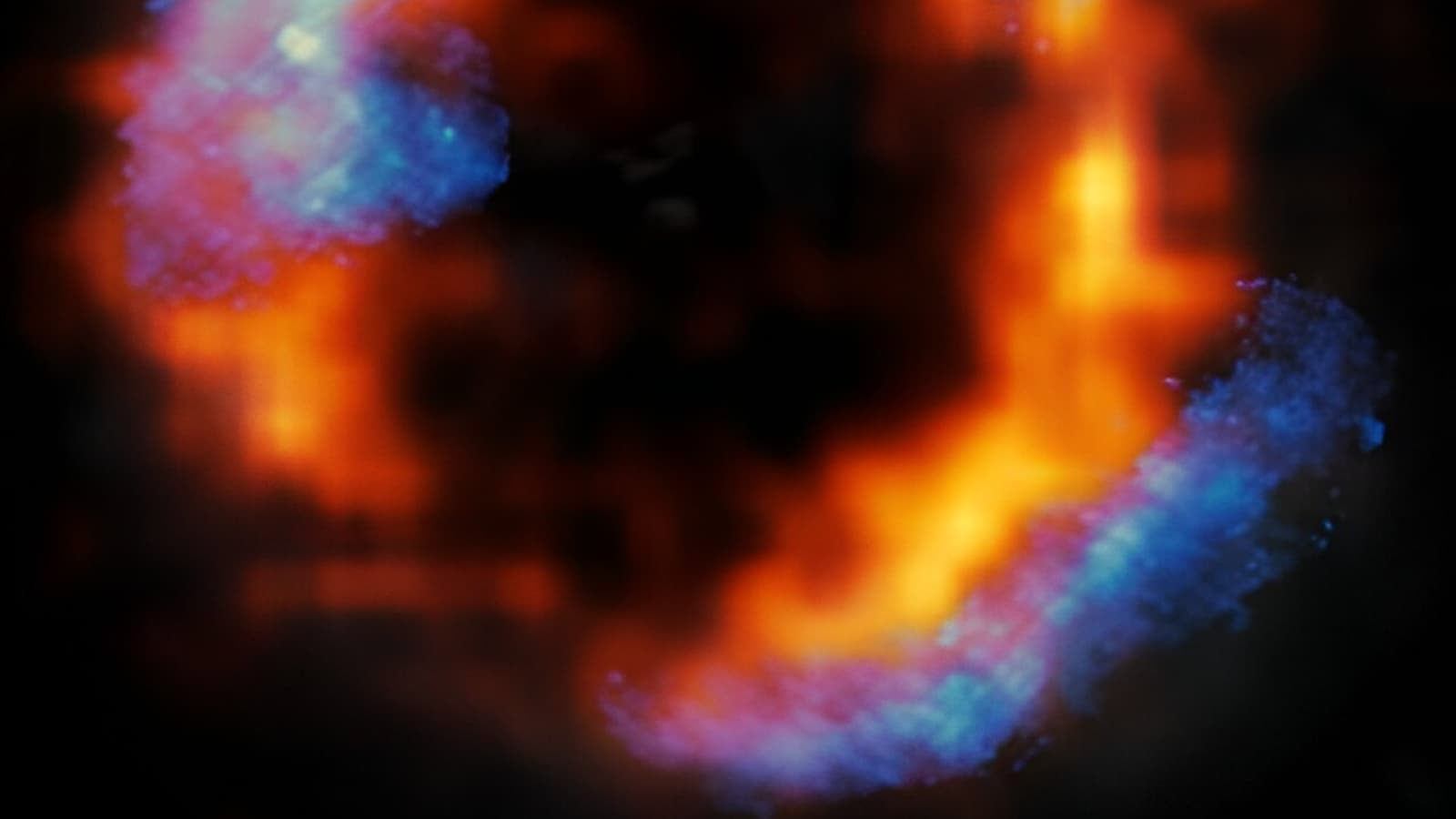 ALMA отслеживает холодный газ, показанный на фотографии синим цветом, тогда как VLT с его новым инструментом ERIS (Enhanced Resolution Imager and Spectrograph) отслеживает тёплый газ, показанный красным цветом. Благодаря этим подробным наблюдениям исследователи обнаружили, что газ в этой экстремальной галактике вращался организованным, а не хаотичным образом, как ожидается после галактического столкновения. Этот необычный результат показывает, что слияния не всегда являются причиной того, что галактика становится HyLIRG.