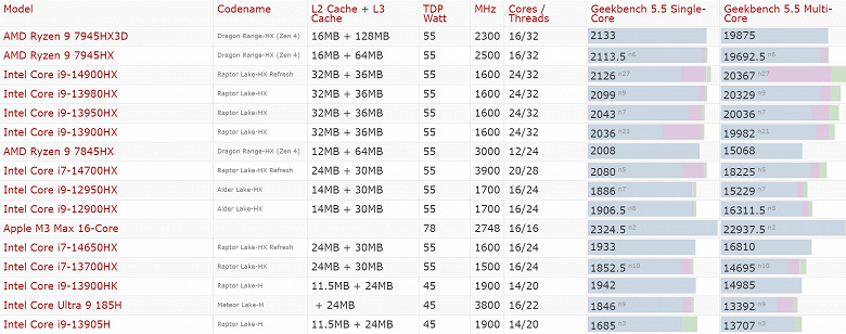 Тесты проходил не топовый APU, а, видимо, один из младших, так как у него всего лишь восемь ядер. Несмотря на это, результат уже неплох. В Geekbench 5 пока ещё безымянная новинка набирает около 2100 и 14 000 баллов в однопоточном и многопоточном режимах соответственно. В первом случае это на уровне текущих Ryzen 7000HX, а во втором — примерно как у Core i9-13900H. И это всего при восьми ядрах CPU.