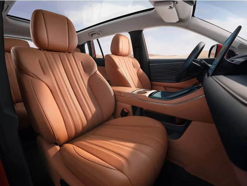 Передние кресла получили вентиляцию, подогрев и множество режимов массажа, а задние раскладываются в полноценное спальное место. Объем багажника достигает 987 литров при сложенных задних сиденьях. В салоне в центре переднего сиденья имеется дополнительная подушка безопасности, позволяющая снизить вторичные удары при столкновении. Боковые подушки безопасности срабатывают мгновенно за 0,008 секунды и имеют время удержания давления 6 секунд, обеспечивая непрерывную защиту при опрокидывании автомобиля.
