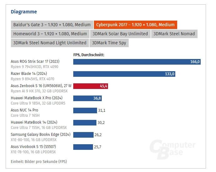 Тесты ComputerBench показывают, что Ryzen AI 9 HX 370 при 33 Вт показывает примерно такой же результат, как Ryzen 7 8945HS при 75 Вт!