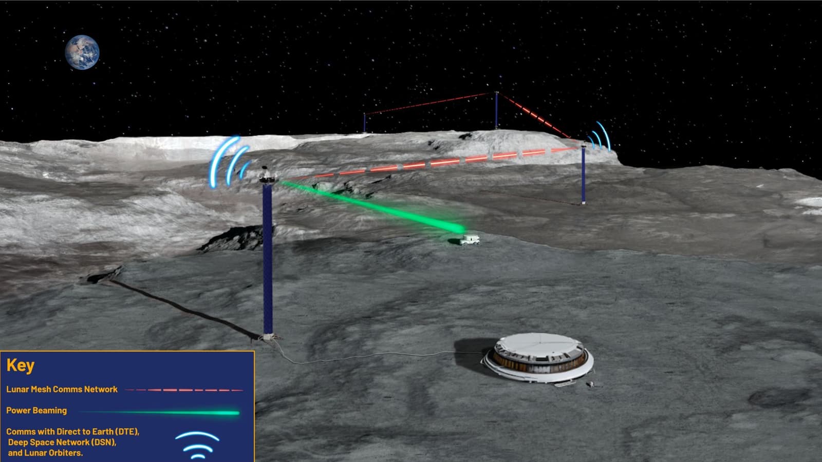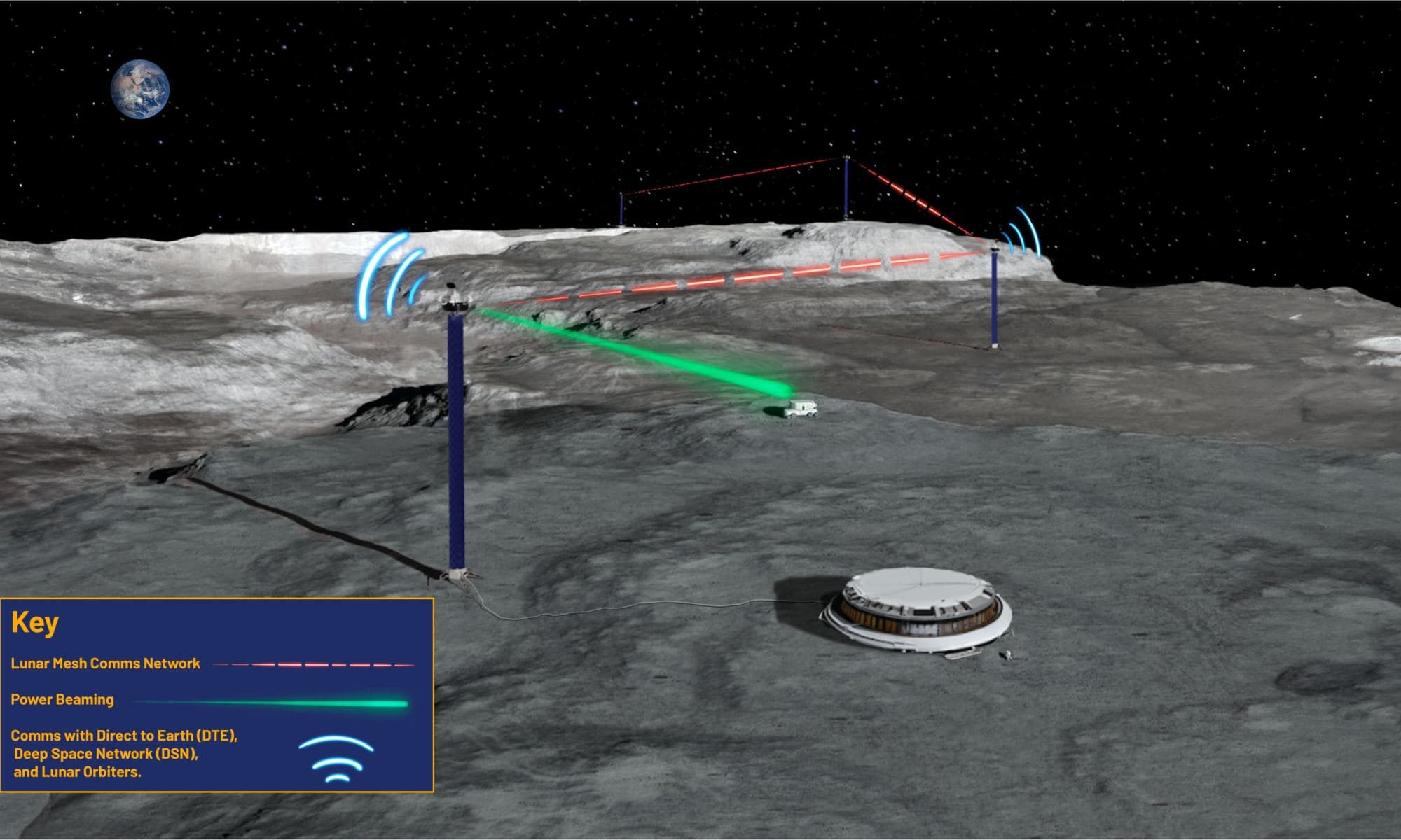 Объединение нескольких вышек LUNARSABER в сетку прямой видимости позволит передавать как связь, так и электроэнергию буквально с другой стороны Луны. Это решение может обеспечить постоянную солнечную энергию и постоянную связь, которые являются ключевыми проблемами в исследовании Луны.