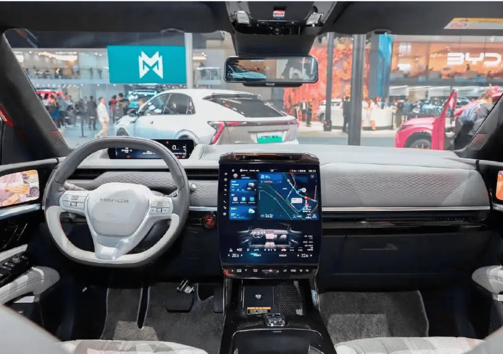 Большой центральный экран развлекательной системы разделен на две части: нижняя часть отведена под климат-контроль и управление сиденьями, верхняя часть охватывает обычные функции экрана развлекательной системы. Автомобиль получил панорамную крышу, звуковую систему Bose, камеры вместо зеркал и беспроводную зарядку телефона.
