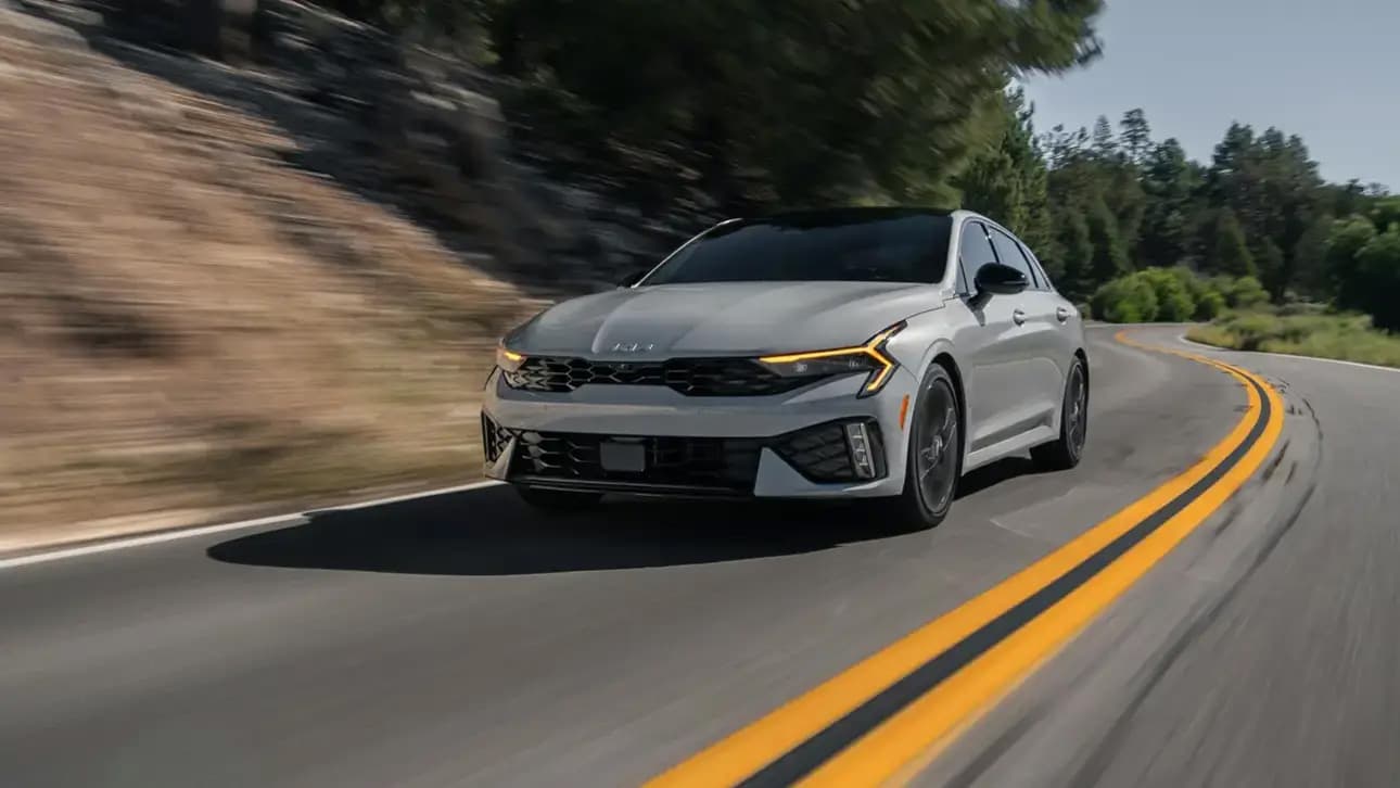 В комплектации таких Kia K5 медиасистема с крупным экраном и поддержкой Android Auto и Apple CarPlay, полный набор подушек безопасности, круиз-контроль, двухзонный климат-контроль, парковочные датчики спереди и сзади, камера заднего вида и многое другое.