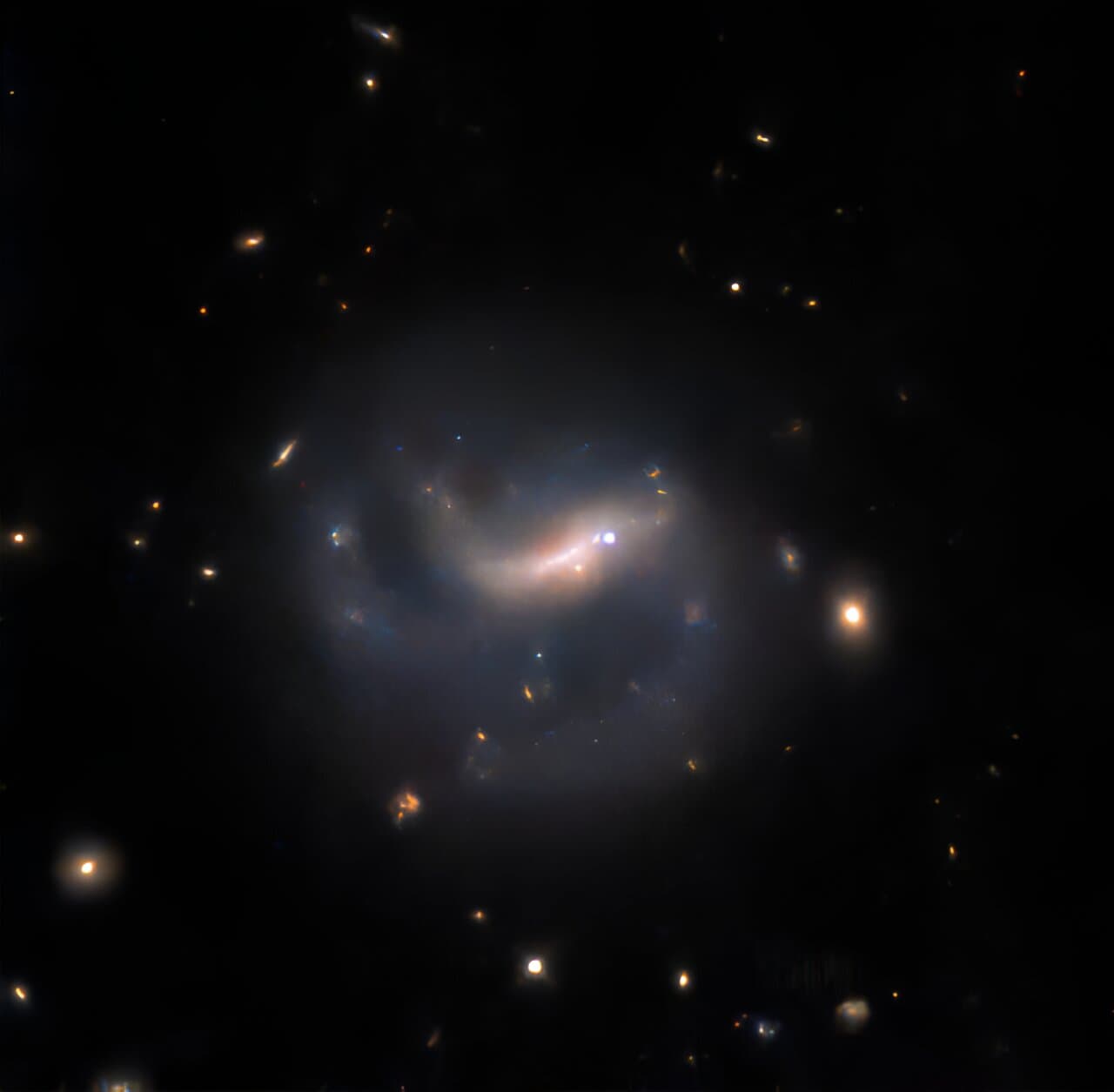 Наблюдения космического телескопа «Хаббл» позволили получить детальное изображение галактики LEDA 857074, расположенной в созвездии Эридана. Эта спиральная галактика с перемычкой отличается частично фрагментированными спиральными рукавами, что придает ей уникальный вид. Однако главной особенностью снимка является сверхновая SN 2022ADQZ, ярко сияющая на правой стороне перемычки галактики.