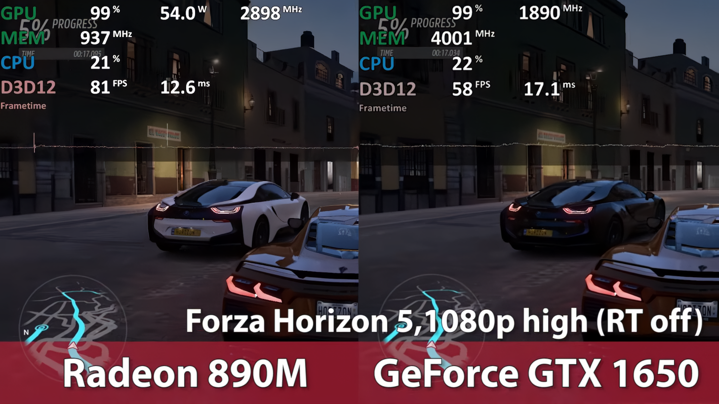 В Cyberpunk 2077 при разрешении Full HD и с невысокими настройками графики Radeon 890M оказался на 45% быстрее GeForce GTX 1650, в Forza Horizon 5 при разрешении Full HD и высоких настройках графики Radeon 890M оказался на 40% быстрее. Встроенная графика закрепила лидерство в First Descendant и Robocop. В Tomb Raider 2013 Radeon 890M уступил GeForce GTX 1650, но зато в Shadow of The Tomb Raider интегрированная графика оказалась впереди.