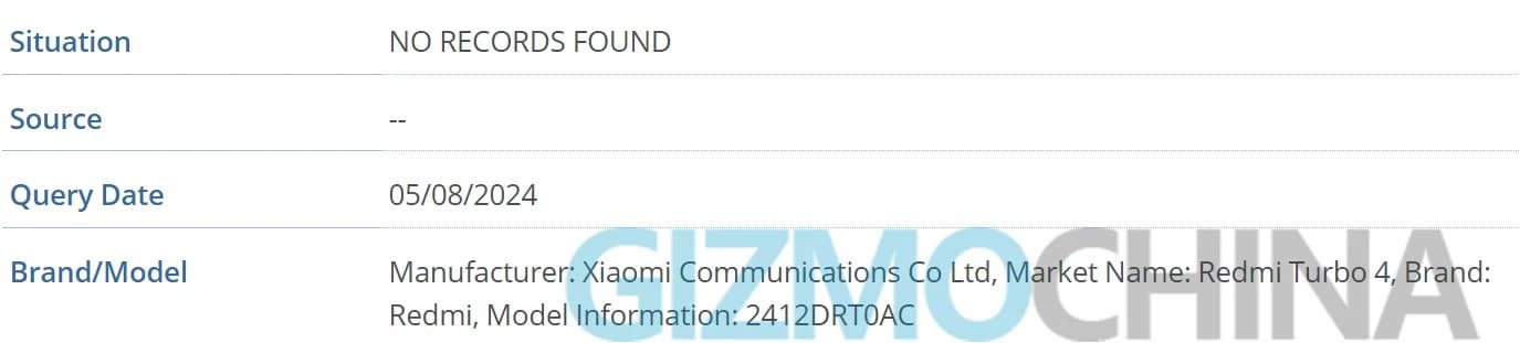 Несмотря на то, что Redmi Turbo 3 вышел всего четыре месяца назад, в Сети (в базе IMEI) уже засветился его преемник — Redmi Turbo 4. Каталожный номер устройства — 2412DRT0AC, буква «С» в конце говорит о том, что тестируется версия для китайского рынка.
