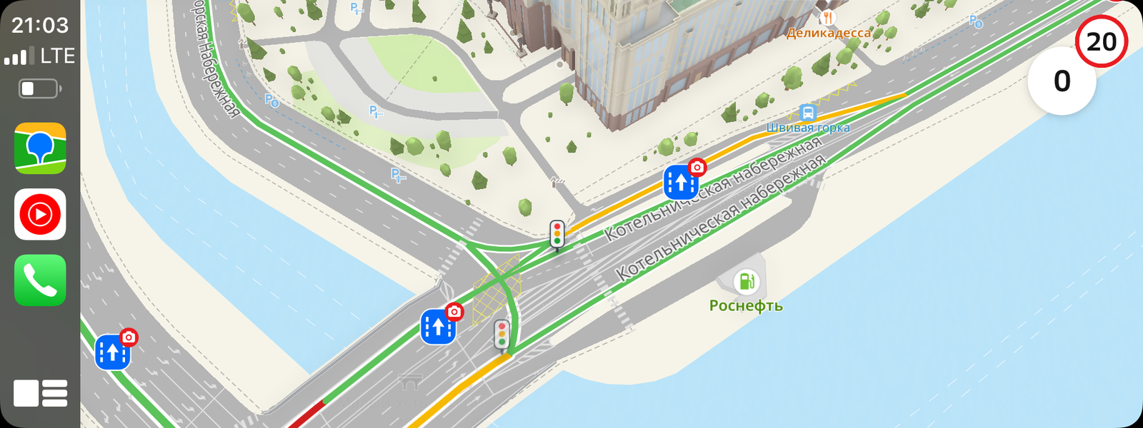 Кроме разметки полос на дорогах отрисованы пешеходные переходы и светофоры, объемные развязки, съезды, островки безопасности, зоны действия видеокамер контроля скорости, детализированы опоры на многоуровневых дорогах, а въезды в туннели отображаются в реальном 3D, что помогает лучше ориентироваться.