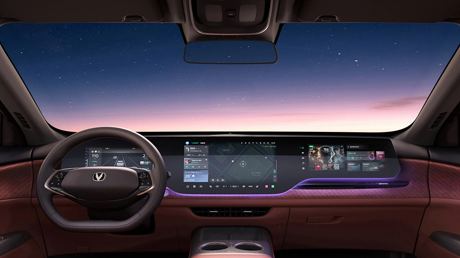 Changan CS75 Plus четвертого поколения оснащен большой панелью, в которую врезаны ЖК-панель приборов, большой центральный экран и дисплей переднего пассажира. Он оборудован новым многофункциональным рулевым колесом со срезанной нижней частью, подрулевым механизмом переключения передач и пассажирским сиденьем с «режимом невесомости».