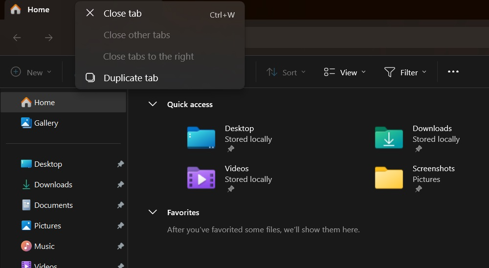 Вкладки File Explorer (Проводник) можно легко дублировать, нажав правой кнопкой мыши по любой открытой вкладке и выбрав опцию «Дублировать вкладку» из контекстного меню.