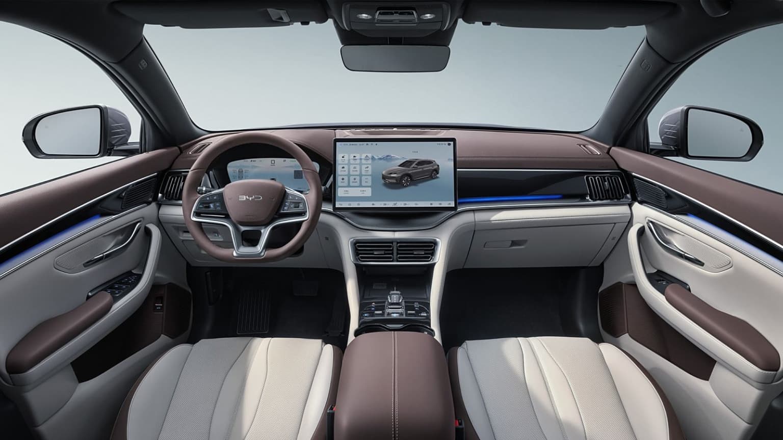 BYD Song Plus EV 2025 года получил новые диски R19 и светящийся логотип BYD вместо надписи Build Your Dreams. Салон выполнен в бело-коричневой цветовой гамме. Центральная консоль Song Plus EV оснащена большим 15,6-дюймовым вращающимся экраном. ЖК-панель приборов расположена за рулевым колесом. Новый Song Plus EV получил DiLink 100 OS, поддерживает голосовое взаимодействие и распознавание жестов. Есть опциональный подогрев рулевого колеса и беспроводная зарядная панель для телефона мощностью 50 Вт.