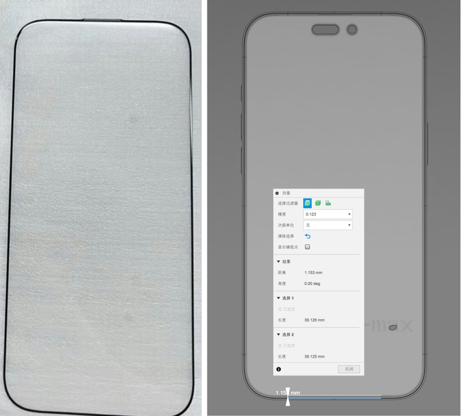 На фотографии нам демонстрируют защитное стекло, а чертеж подтверждает, что ширина рамки составит всего 1,15 мм. Напомним, iPhone 15 Pro Max получил рамку шириной 1,55 мм.