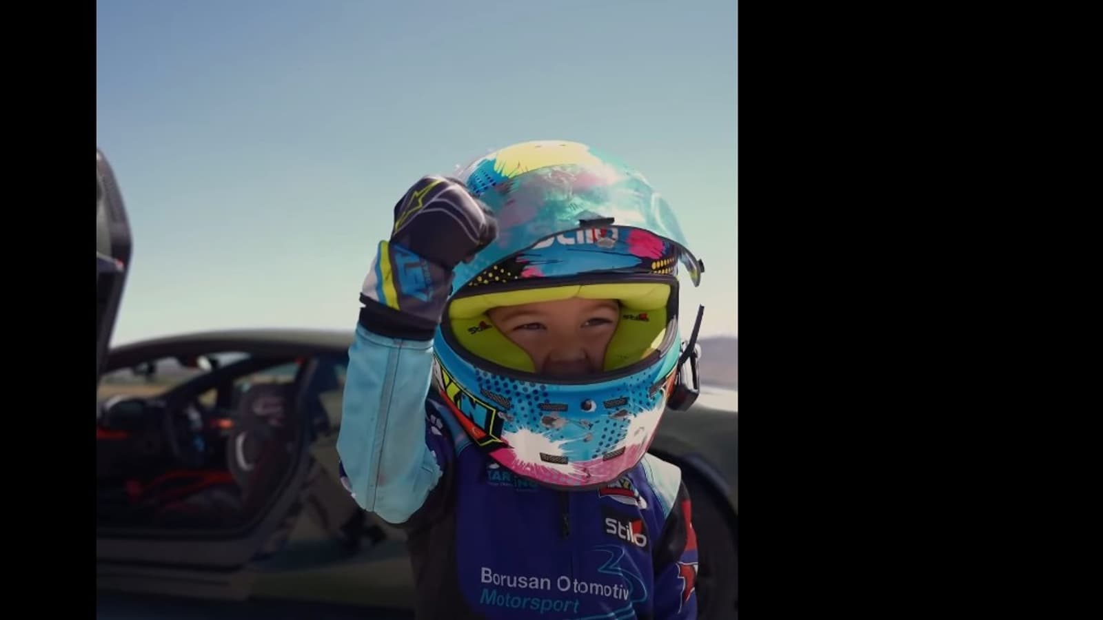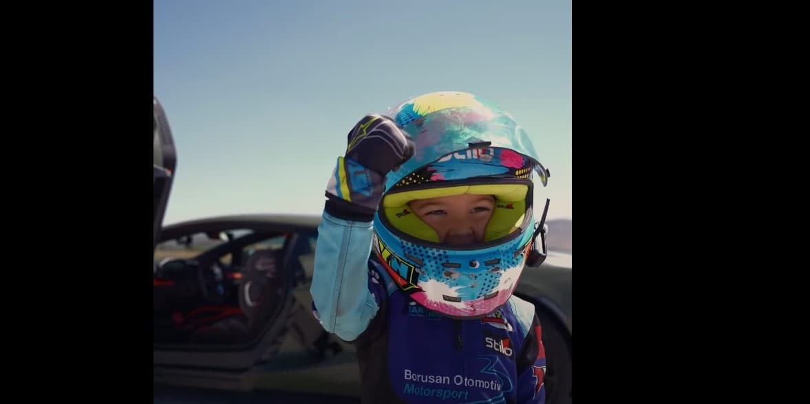 В коротком ролике показано, как Софуоглу надевает костюм, шлем, пристегивается в специальном автокресле, установленном в 1015-сильном гибриде. Его отец сидит на пассажирском сиденье, пока Кенан ведет машину по взлетно-посадочной полосе.