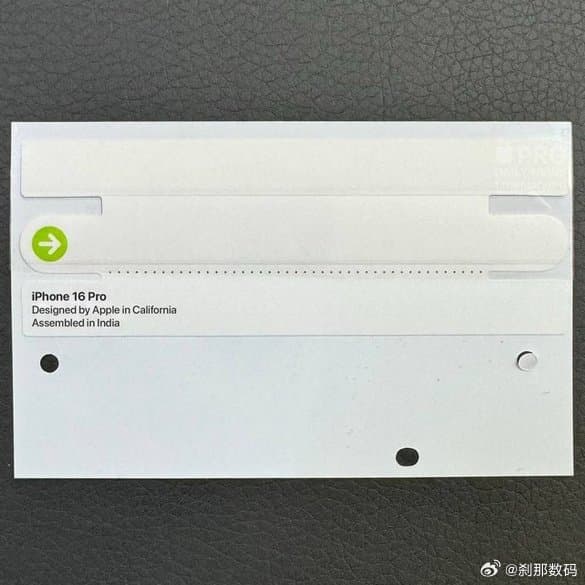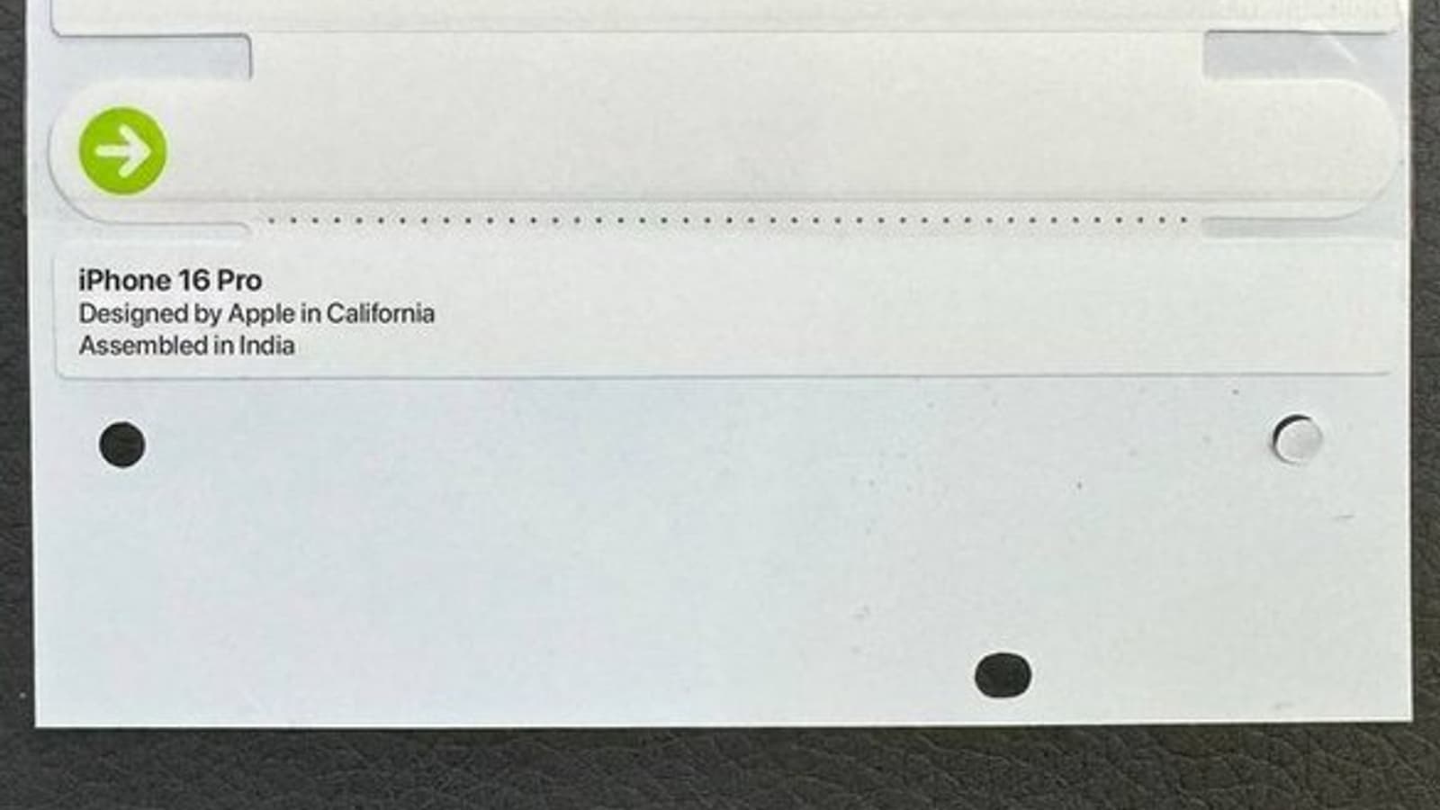 На фотографии видна следующая надпись: «Разработан Apple в Калифорнии. Собран в Индии». Apple, как ожидается, будет собирать в Индии только модели iPhone 16 Pro и 16 Pro Max, но не стандартные iPhone 16 и 16 Plus.
