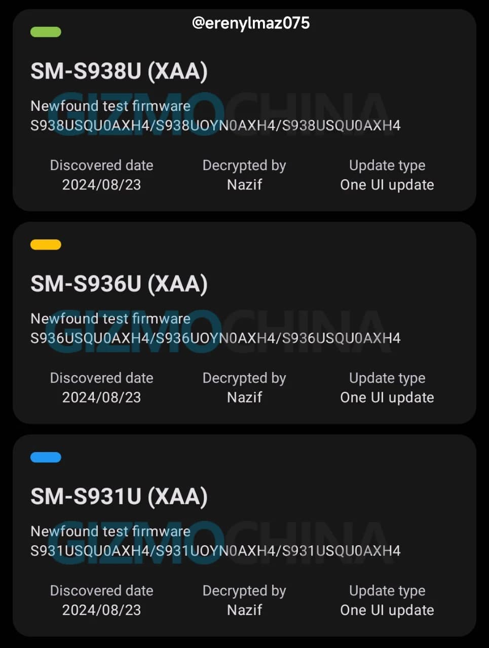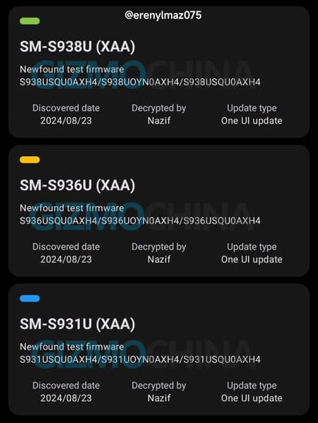 Компания тестирует One UI 7 для трех моделей будущей линейки. Прошивка для Galaxy S25 проходит под номерами S931USQU0AXH4, S931UOYN0AXH4 и S931USQU0AXH4. Номера прошивки для Galaxy S25 Plus — S936USQU0AXH4, S936UOYN0AXH4, S936USQU0AXH4, для Galaxy S25 Ultra — S938USQU0AXH4, S938UOYN0AXH4, S938USQU0AXH4.