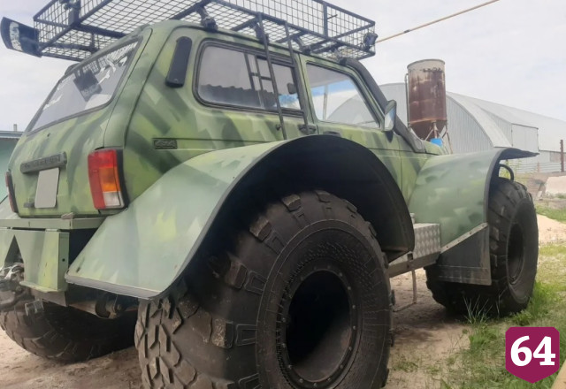 Уникальный снегоболотоход на базе «Нивы», который оснащен рулевой колонкой от Toyota Land Cruiser 100, мостами из иж-техновские запчастей и прочими комплектующими продают в Саратовской области.