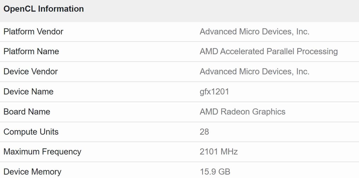 Бенчмарк указывает на наличие у адаптера 28 блоков WGP, то есть, если ничего не поменялось, то это 56 блоков CU или 3584 потоковых процессора. Для сравнения, у RX 7800 XT имеется 3840 потоковых процессоров.