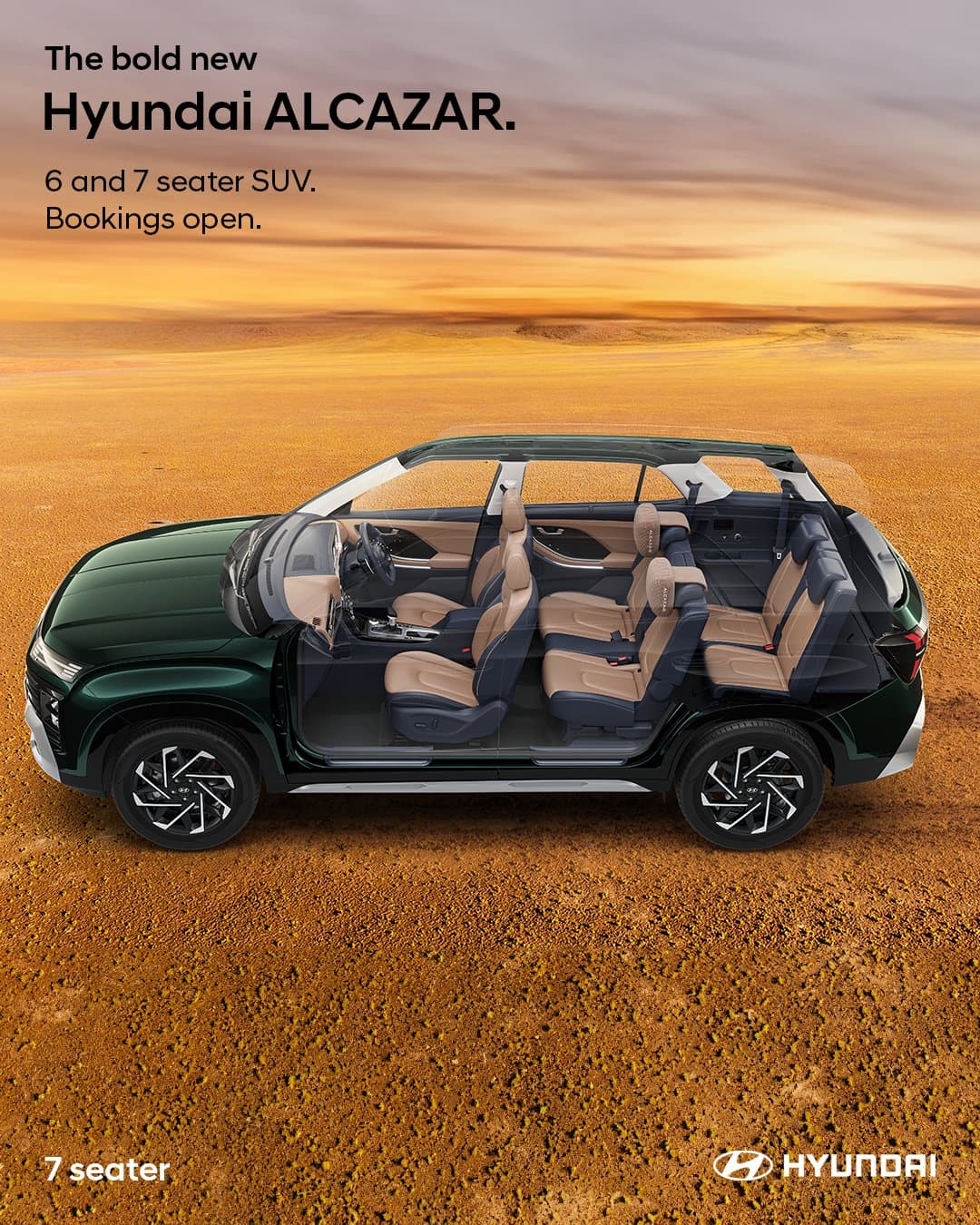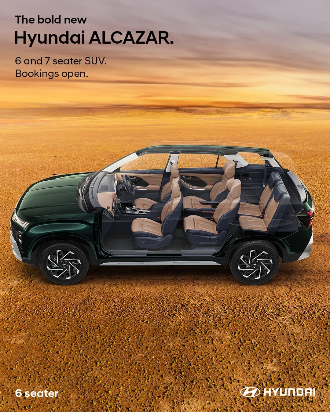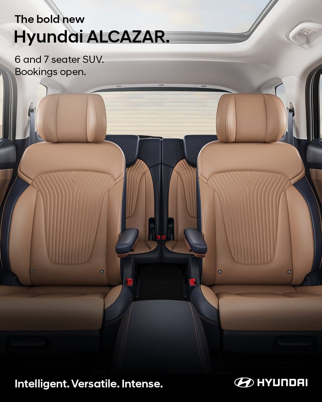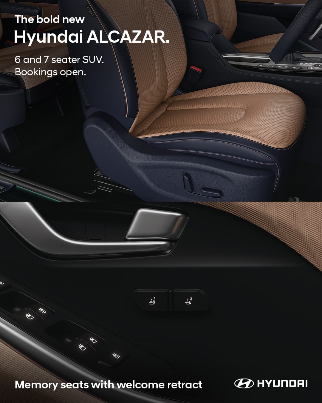 Hyundai Alcazar получил панель экранов с двумя дисплеями с диагональю 10,25 дюйма, более комфортные кресла с увеличенными подголовниками. На втором ряду появилась беспроводная зарядка для смартфона и вентиляция кресел. А у кресел спереди теперь не только электрические регулировки, но память положений. Также у кроссовера большая панорамная крыша, двухзонный климат-контроль, адаптивный круиз-контроль и ряд систем помощи водителю. К слову, автомобиль не строго 7-местный, доступен и 6-местный вариант.