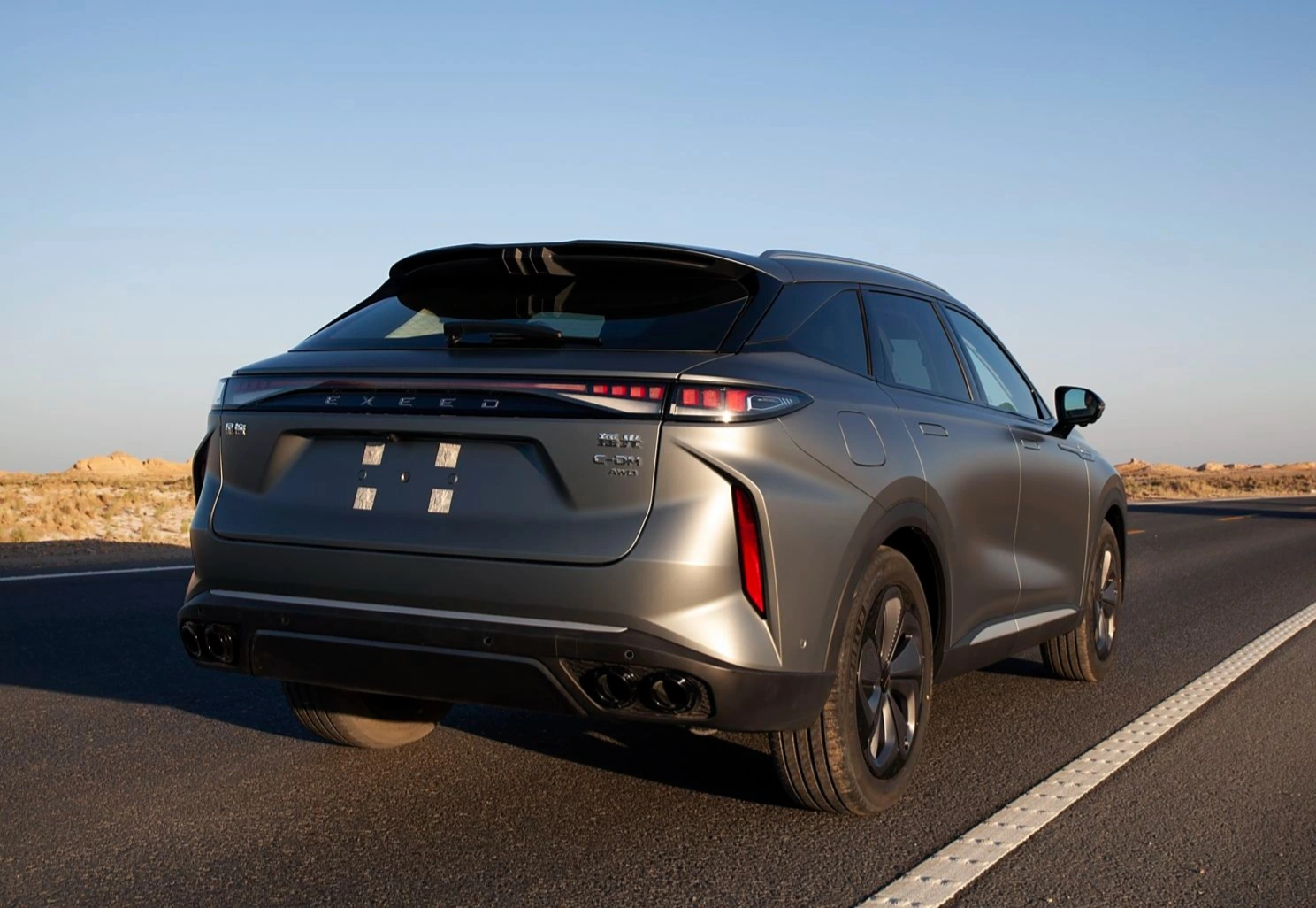 Габариты Exeed RX составляют 4781 х 1920 х 1671 мм соответственно, колесная база — 2815 мм, снаряженная масса — 2171 кг. Exeed RX оснащен новой закрытой передней частью, под фарами добавлен D-образный декоративный элемент.