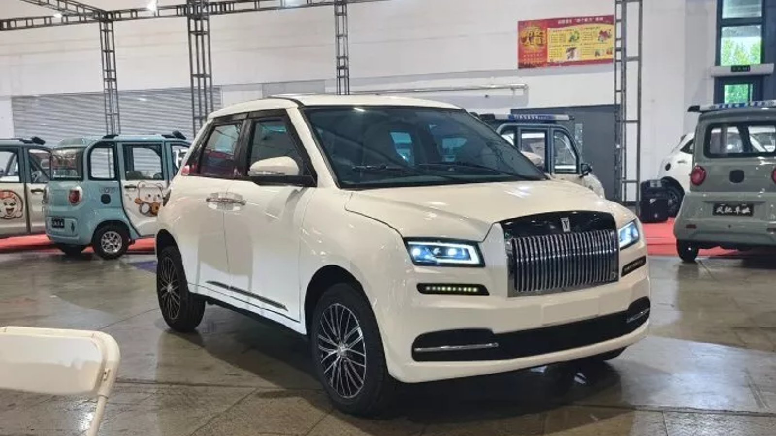 В Китае представили миниатюрные версии Rolls-Royce Phantom и Mercedes-Maybach GLS. Они засветились на небольшом автомобильном мероприятии рядом с парком других крошечных четырехколесных транспортных средств, похожих на японские кей-кары.