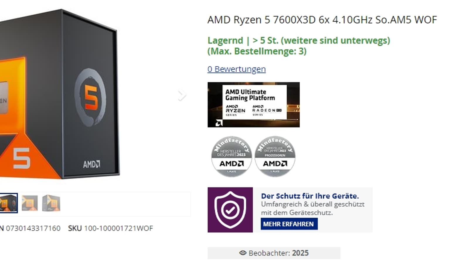 Ryzen 5 7600X3D уже доступен в крупнейшей немецкой сети Mindfactory по цене 330 евро. В США, напомним, новинка стоит 300 долларов, но это без налогов.