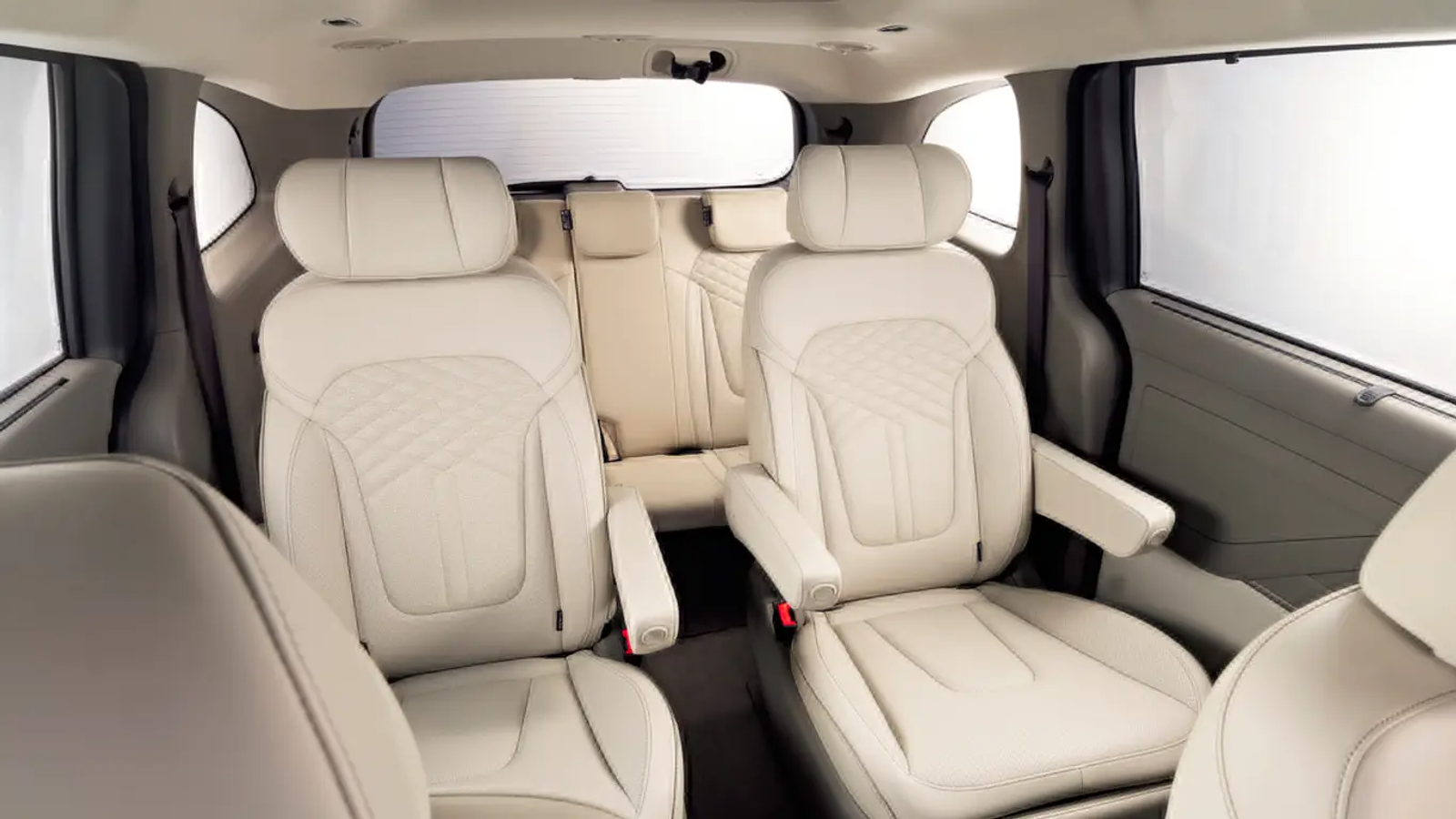 В минивэне предусмотрено семь посадочных мест, а сиденья второго и третьего ряда можно складывать в соотношении 60:40. Предусмотрены отдельные столики на спинках передних сидений и карманы для хранения мелочей.