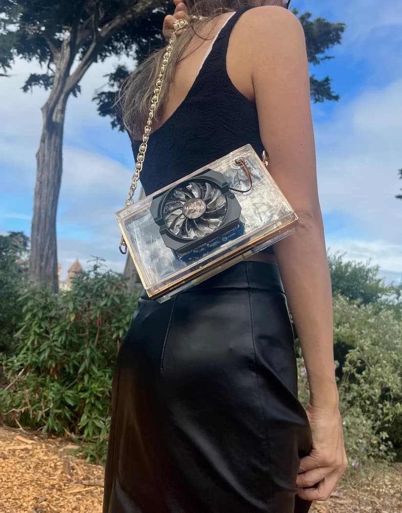 Продают не карту саму по себе, а женскую сумочку, в корпус которой интегрировали видеокарту. Причём с вентилятором.