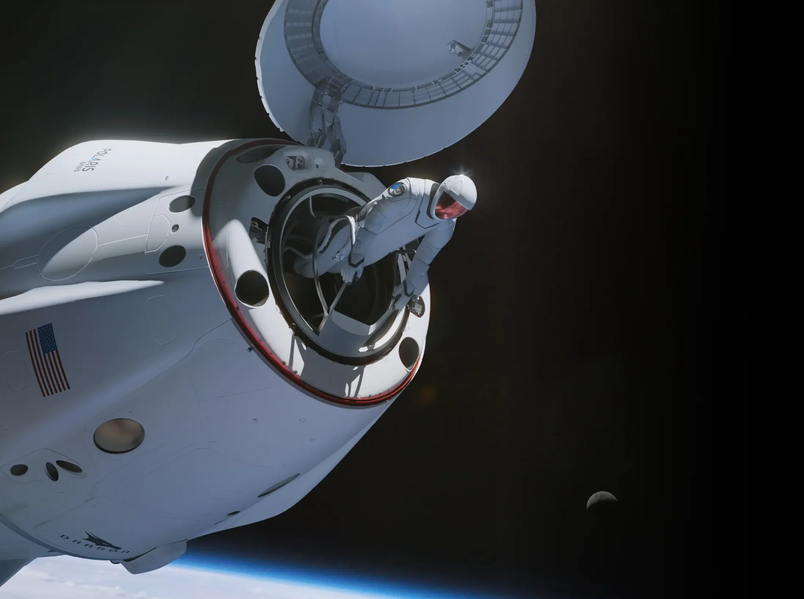 В ходе миссии должен состояться первый в истории выход непрофессиональных астронавтов в открытый космос. Ими станут миллиардер Джаред Айзекман и инженер Сара Джиллис, их выход в космическое пространство намечен на третий день полета. Пилот экипажа Скотт Потит и инженер Анна Менон будут контролировать происходящее изнутри. Выход в космос состоится на высоте порядка 700 км от поверхности Земли.