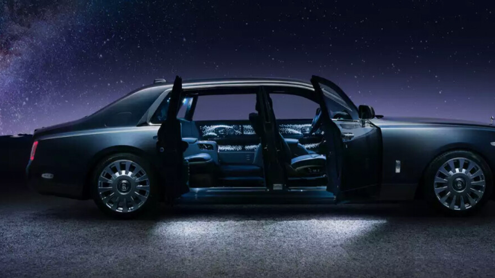 Rolls-Royce Phantom Long Extended 2024 оснащён 6,8-литровым бензиновым двигателем мощностью 571 л.с., в салоне использованы натуральная кожа и дерево, а также предусмотрены современные технологии для комфорта и безопасности пассажиров.