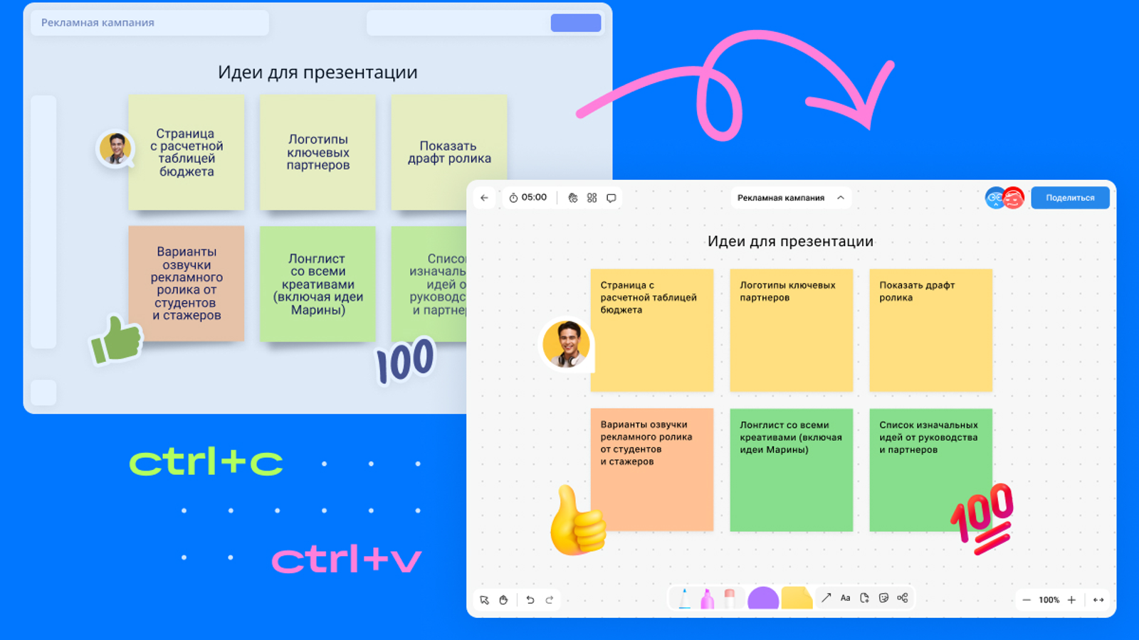 Для того, чтобы быстро перенести визуальные и текстовые элементы, пользователям необходимо выделить фрагменты на доске в Miro и скопировать их. Выбранные данные автоматически будут перенесены в буфер обмена. Далее пользователям нужно открыть «VK Доску» и вставить их. Это позволит быстро и удобно перенести и не потерять все важные элементы, а также продолжить с ними работать после бэкапа.