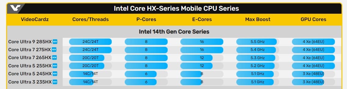 Линейка Arrow Lake-HX, как и текущее поколение, будет представлять собой фактически те же настольные CPU, только со сниженными лимитами мощности. А это значит, что топовая модель получит 24 ядра.