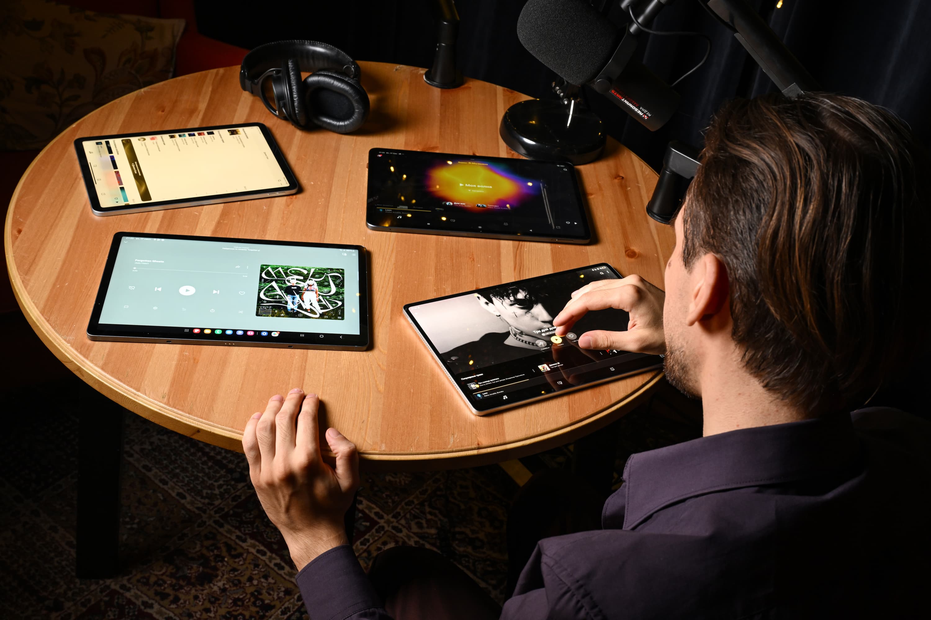 Если говорить только о студии и рабочих вопросах, то я выберу Xiaomi, потому что он обеспечивает самое нейтральное и не подкрашенное звучание. Да, не эмоциональное и точно не для блокбастеров, зато этот планшет может оказаться полезен, когда нужно отслушать наш материал, или другие звукорежиссеры что-то скинули и попросили оценить звук на бытовом приборе. Впрочем, в такие сценариях обычно я беру одну из пяти пар наших студийных наушников, но и планшет Xiaomi подойдет для прослушивания материала. iPad Air хоть и будет звучать очень привычно для пользователей iPhone и обладает довольно правильным звуком, но ему явно не хватает громкости, низких частот и ширины стереопанорамы. Samsung для меня стал явным аутсайдером из-за скомканного «телефонного» звучания с акцентом на верхней середине и явной нехватки низких частот.