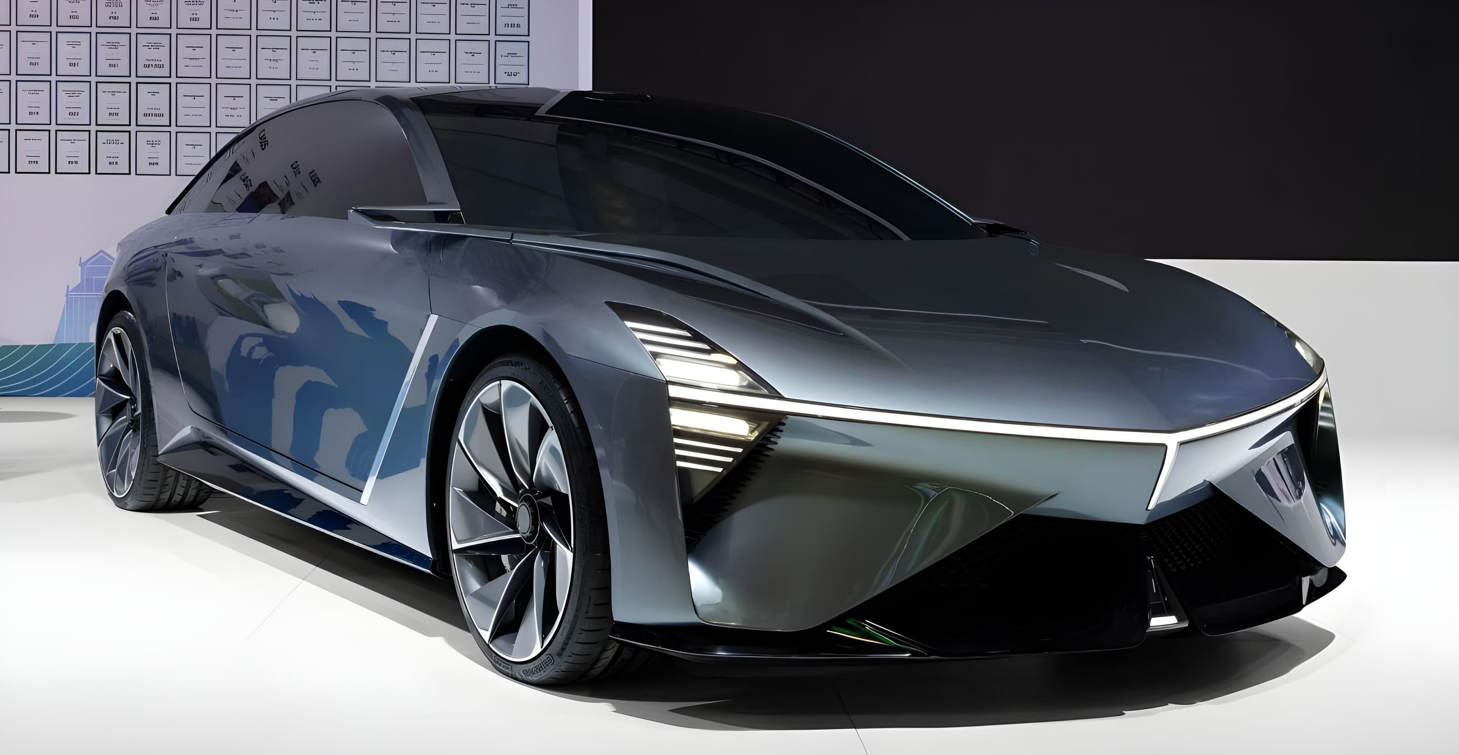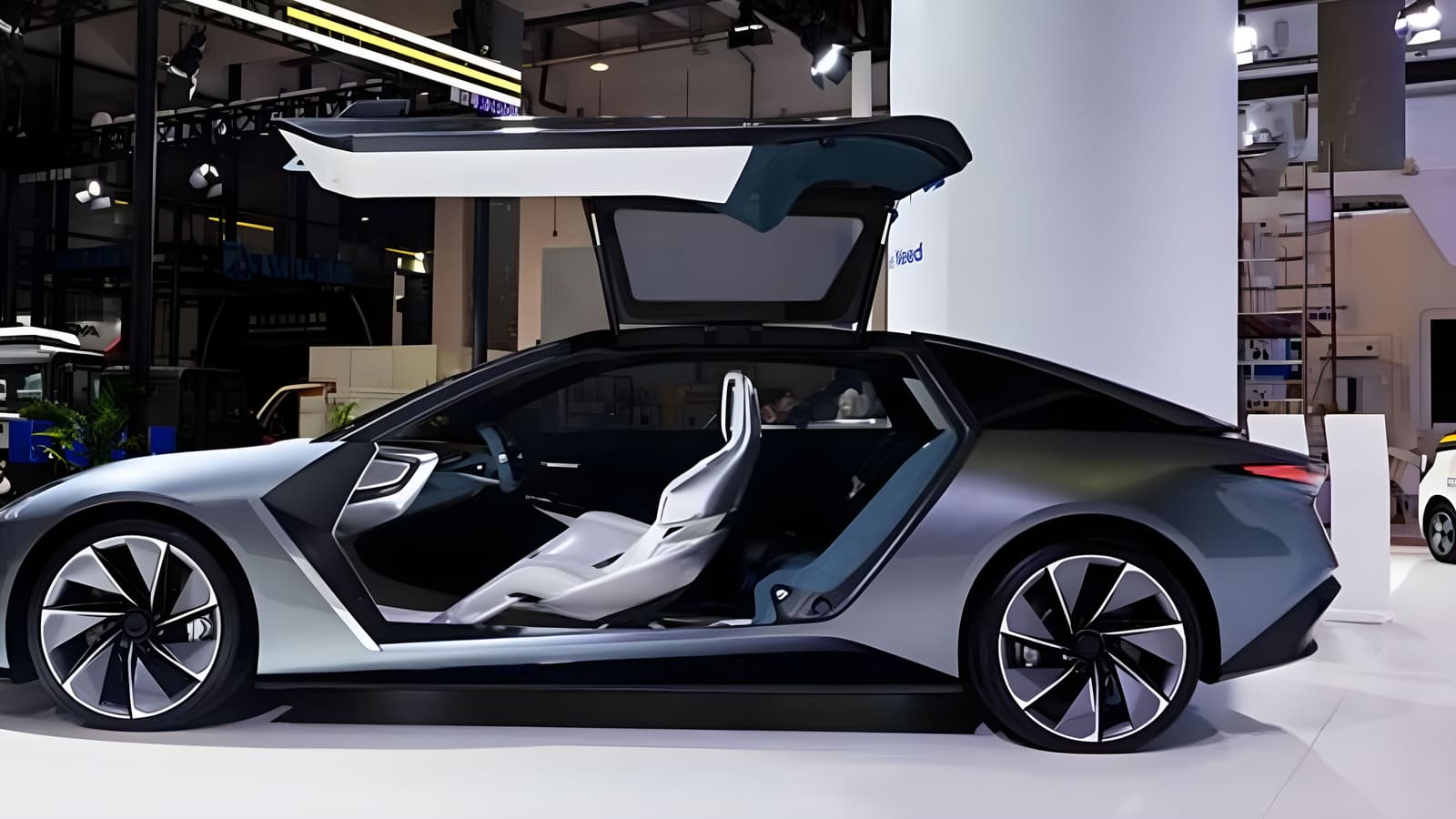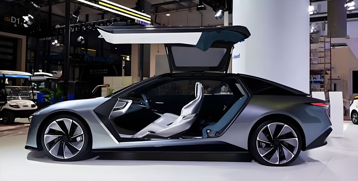 Концепт-кар является чисто электрическим, большие двухсторонние двери типа «крыло чайки» закрывают как передние, так и задние сиденья.