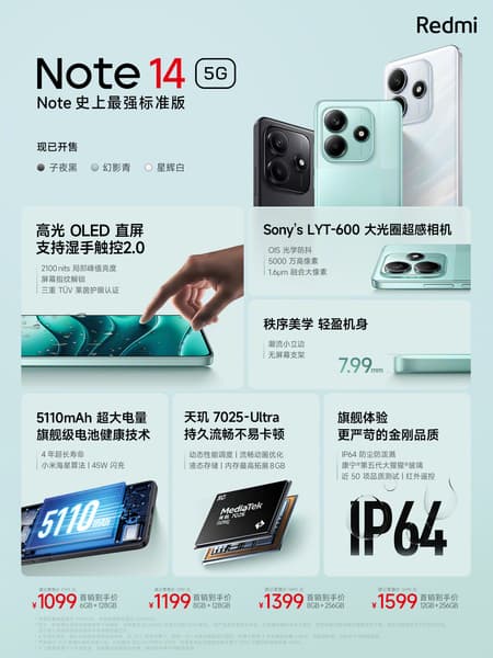 Redmi Note 14 5G базируется на однокристальной платформе MediaTek Dimensity 7025-Ultra. Создатели называют аппарат самым мощным базовым Redmi Note в истории.