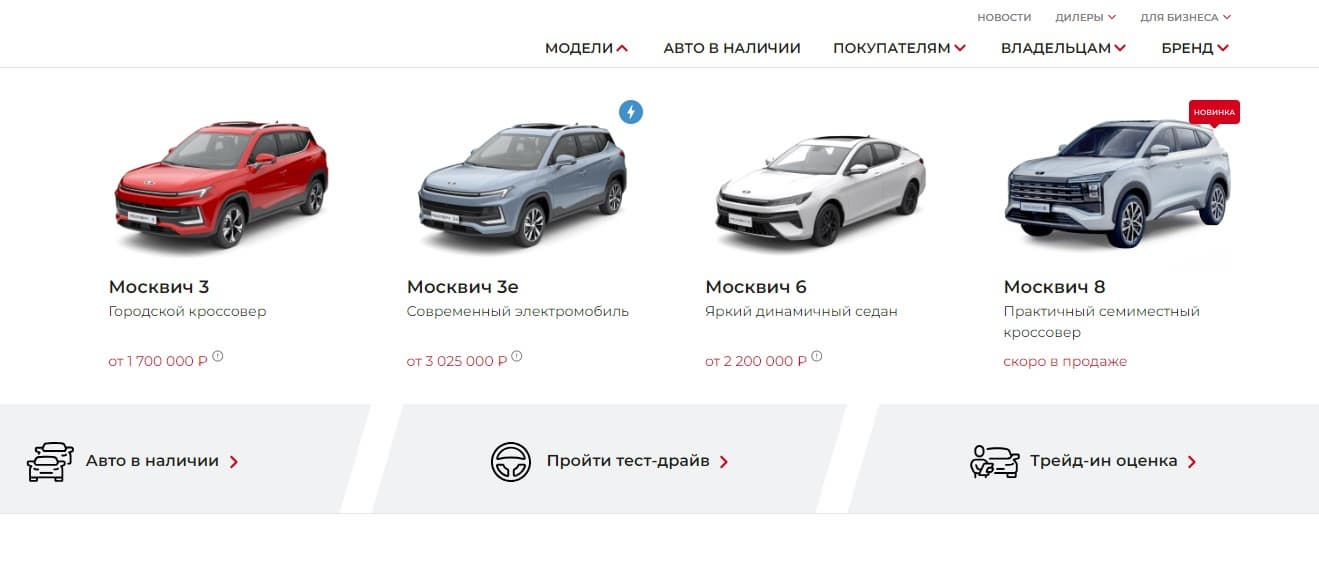 На официальном сайте «Москвича» снова появился новый семиместный кроссовер «Москвич 8», при этом нажатие на изображение новинки уже не выдает ошибку 404.