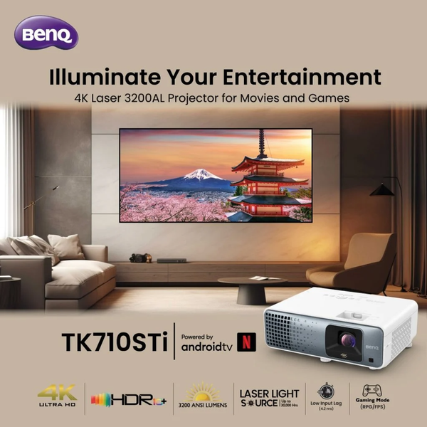 BenQ представила лазерный проектор TK710STi 4K Smart Short Throw Laser Projector, который поддерживает разрешение 4K UHD, HDR10 и обеспечивает яркость 3200 ANSI люмен.