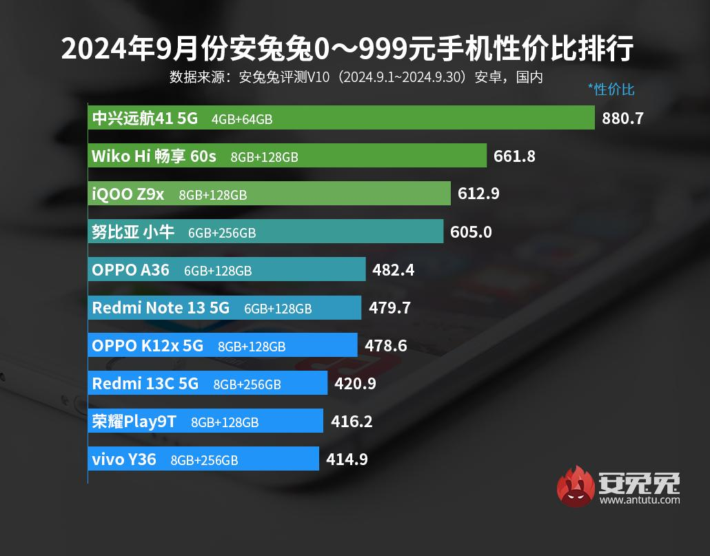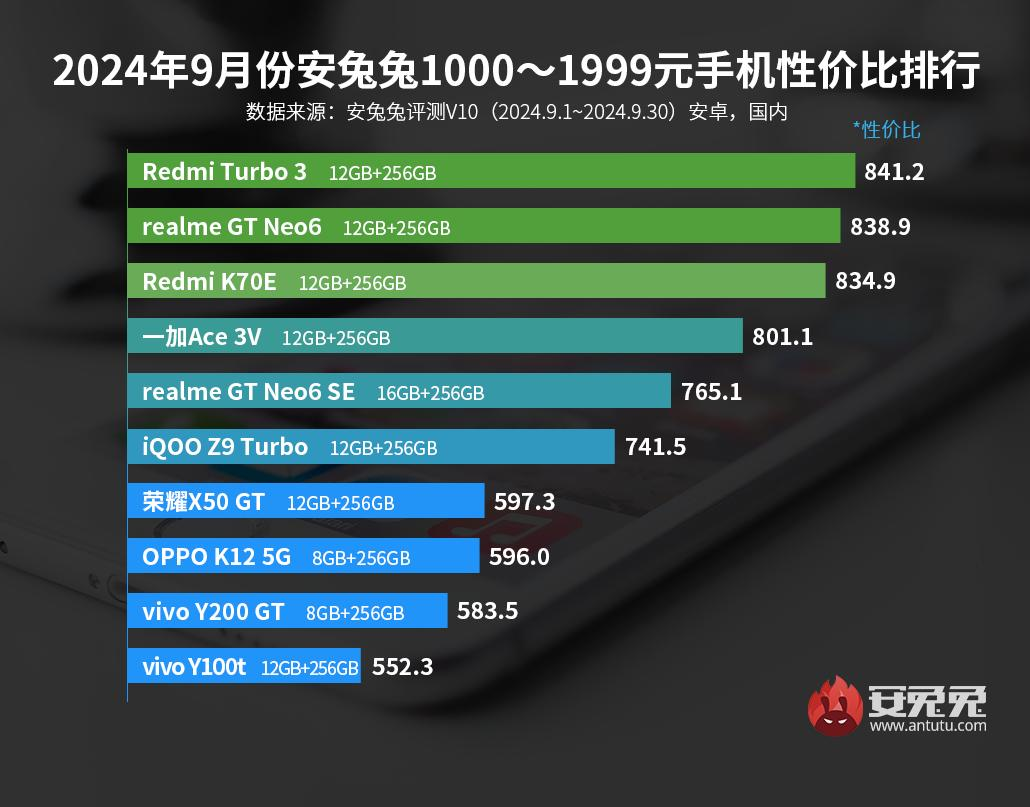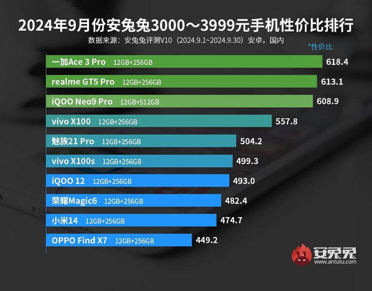Команда бенчмарка AnTuTu опубликовала свежие рейтинги лучших смартфонов Android по соотношению цены и производительности в разных ценовых категориях по состоянию на конец сентября 2024 года.