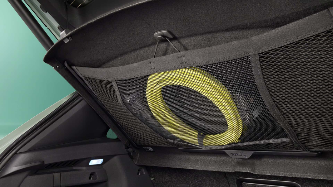 Длинный список предметов Simply Clever включает в себя все, от обычного зонтика в стиле Rolls-Royce в водительской двери до знака аварийной остановки в задней двери. Кроме того, под полкой для багажа есть сетка для хранения зарядного кабеля, а также складные крючки по бокам грузового отсека.
