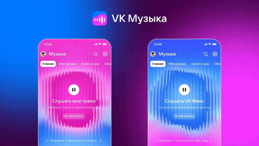 На главном экране сервиса представлены два самых популярных раздела: это раздел «VK Микс» с рекомендациями и «Мои треки» — коллекция треков пользователя. Между разделами можно переключаться с помощью одного свайпа. Появились новые настройки в разделе «VK Микс», и обновился плеер.