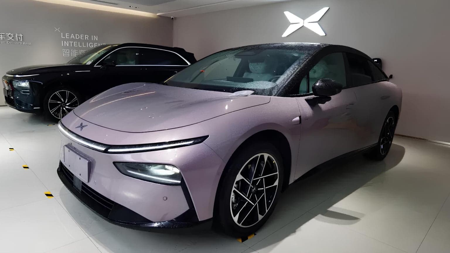 Один из этих лифтбэков уже добрался до выставочного зала. У него фиолетовый цвет кузова с черненой крышей и значками. Еще один автомобиль был замечен рядом с магазином Xpeng с серебристым кузовом и хромированными эмблемами.