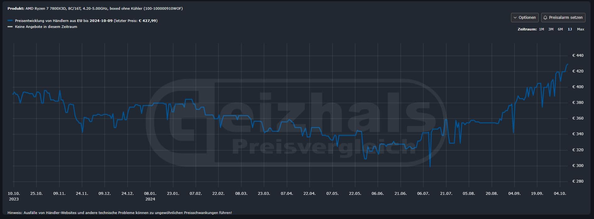 Немного подорожал и Ryzen 7 5700X3D, но не так значительно. Ryzen 9 7950X3D в последнее время стоил 520-540 евро, но сейчас за него просят 580 евро.