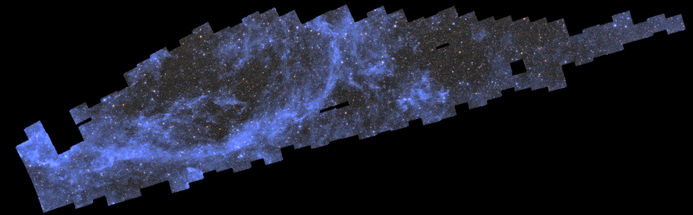Одна из особенностей, которая зачарует ученых в этой мозаике Евклида, — это тусклые облака, которые простираются между звёздами в пределах Млечного Пути. На более широких снимках они выглядят как светло-голубые полосы на чёрном фоне.