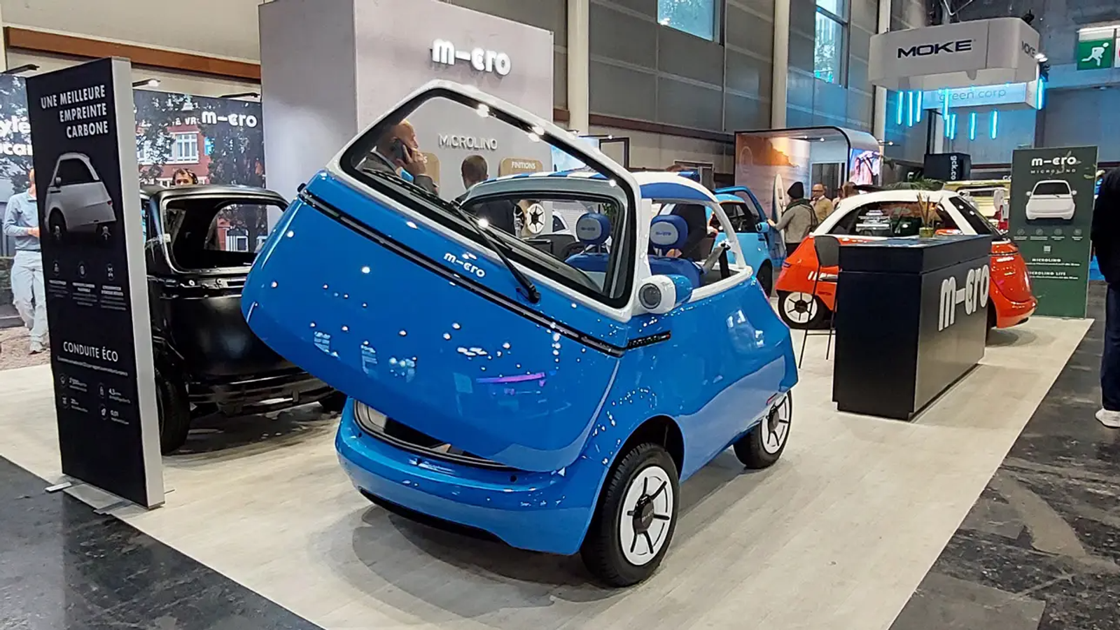 Microlino отличается уникальной конструкцией, он оснащен фронтальной дверью. Компания заявляет об успехах по снижению углеродного следа и существенной экономии топлива по сравнению с традиционными автомобилями с ДВС.