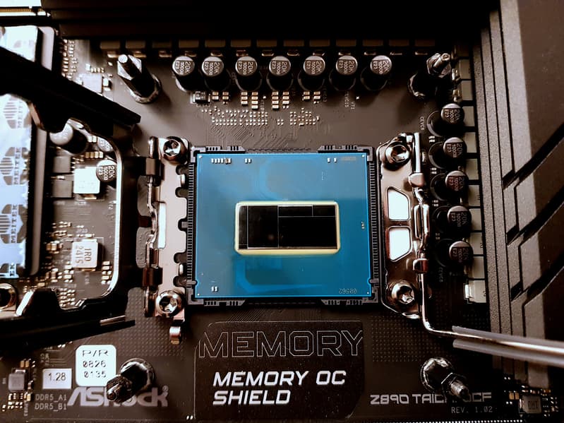 Монолитные CPU Intel закончились давно: Arrow Lake состоит из пяти чиплетов, в их числе непосредственно сам CPU, а также GPU, SoC, чиплет системы ввода-вывода. Такая схема дает Intel возможность использовать различные техпроцессы для различных составляющих процессора и за счет этого экономить на производстве. Например, чиплет CPU производится TSMC по техпроцессу N3B, чиплет GPU — по техпроцессу N5P, чиплеты SoC и I/O — по техпроцессу N6.