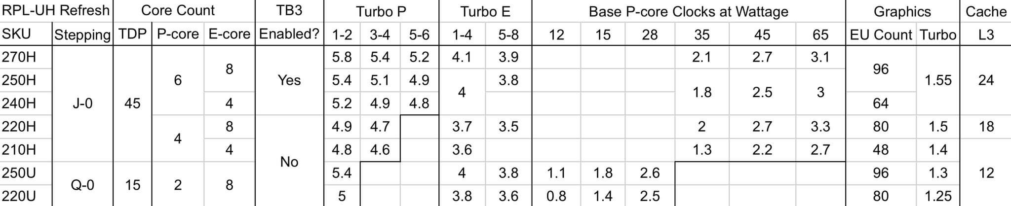 Не только Core 7 250U будет переименованным в который раз процессором. Вся линейка, судя по свежим данным, будет такой же.