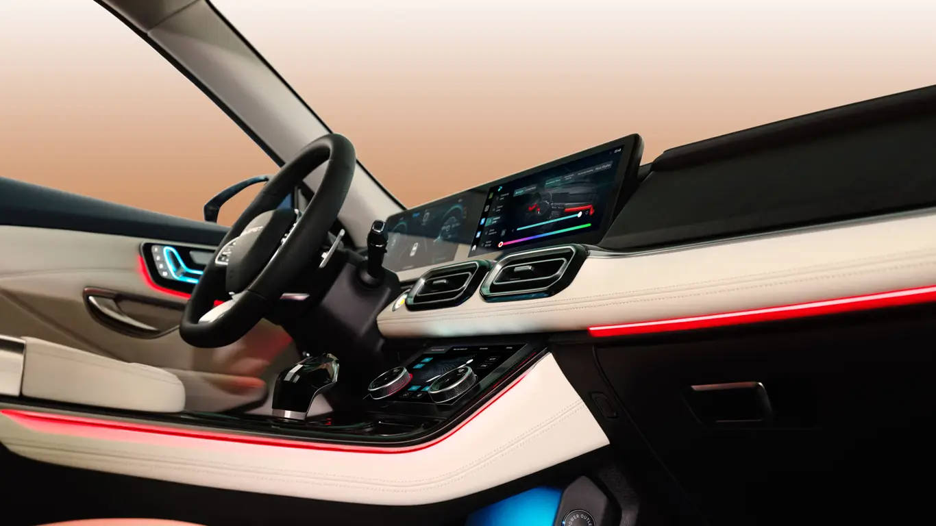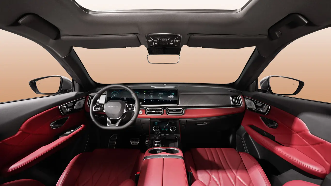 В оснащение входят трехзонный климат-контроль, комфортабельные кресла с обогревом и вентиляцией, а также экран приборной панели и экран мультимедийной системы диагональю по 12,3 дюйма каждый. Кроме того, упоминается голосовое управление, распознающее команды на русском языке, и аудиосистема с 8 динамиками Sony с эффектом присутствия в концертном зале. Всё это работает на базе чипа Qualcomm Snapdragon 8155, предусмотрена поддержка Apple CarPlay и Android Auto.