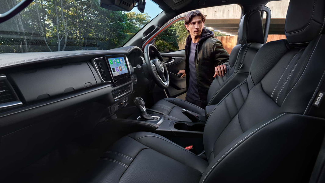 Mazda BT-50 2025 года выпуска получает обновленные фары со светодиодными ДХО. Спереди расположен огромный логотип, изменился рисунок решетки радиатора. Передний бампер был изменен, чтобы интегрировать воздушную завесу для лучшей аэродинамической эффективности, чтобы снизить расход топлива. Установлены новые легкосплавные диски.